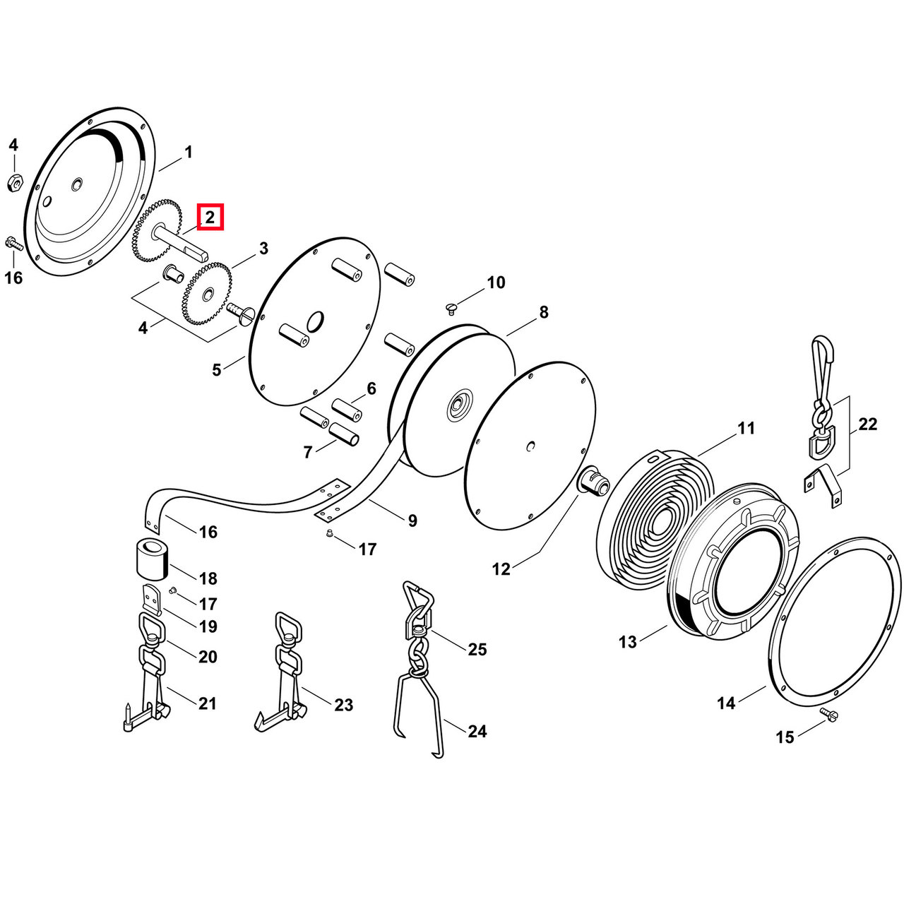- Nummer 2 – Hauptachse mit Zahnrad
