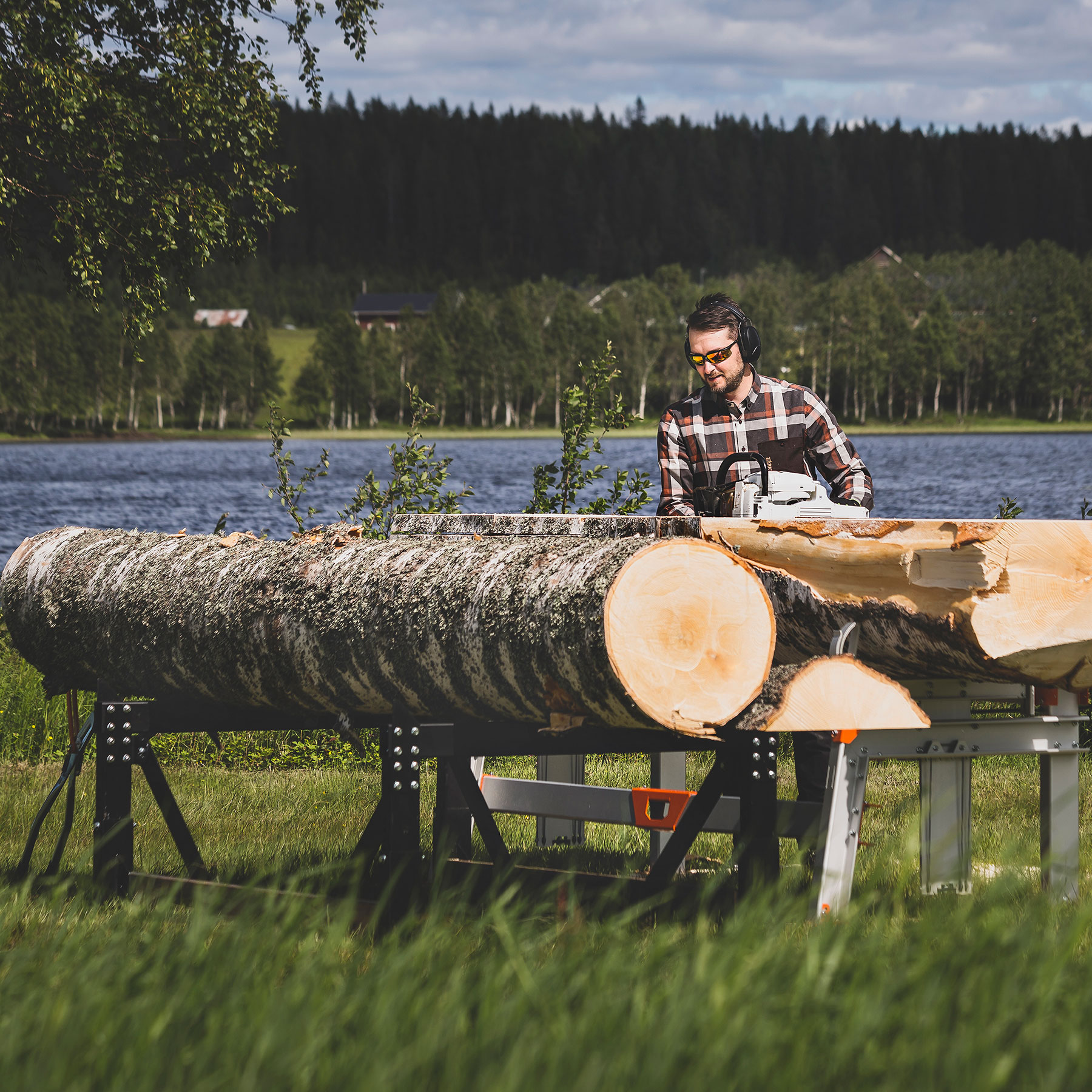 Ein komplettes System zum Schneiden von Brettern mit Ihrer Motorsäge Das Logosol Timberjig verwandelt Ihre Motorsäge in ein ultra-mobiles Mini-Sägewerk.