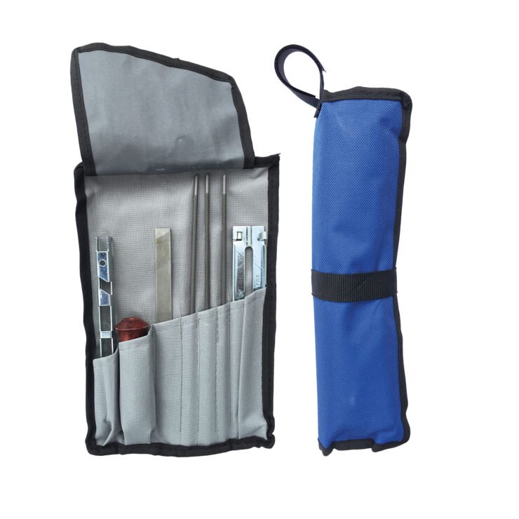 - Inhalt des Schärfsets in der Rolltasche: 3 Rundfeilen, Feilgriff, Flachfeile, Feilenhalter und Feilenlehre