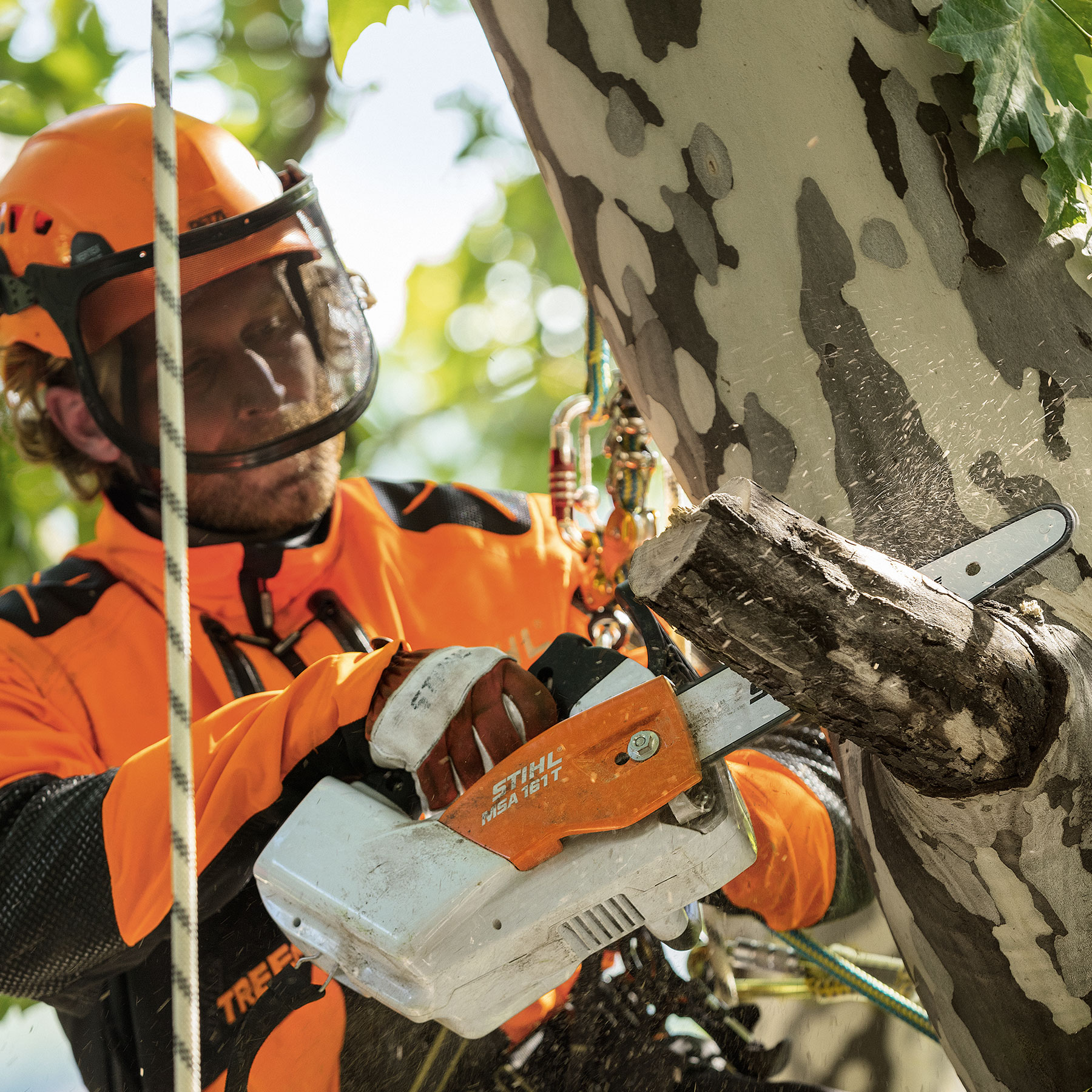 • Gewicht: 9,9 kg (Gewicht unbetankt, ohne Führungschiene und Sägekette)