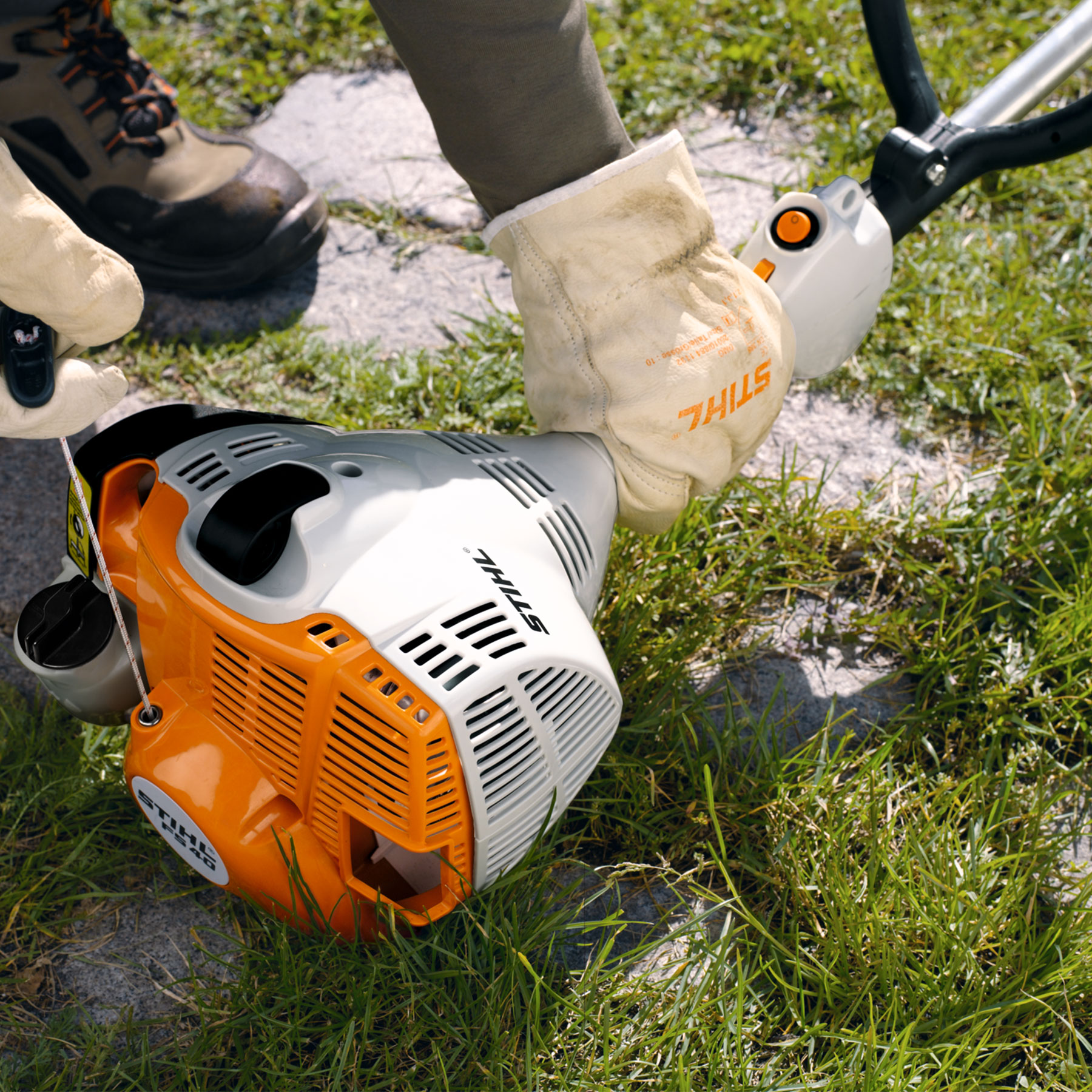 Mit vereinfachtem Startvorgang, zum Mähen kleinerer Grasflächen. Multifunktionsgriff, Bügelgriff, STIHL 2-MIX-Motor.