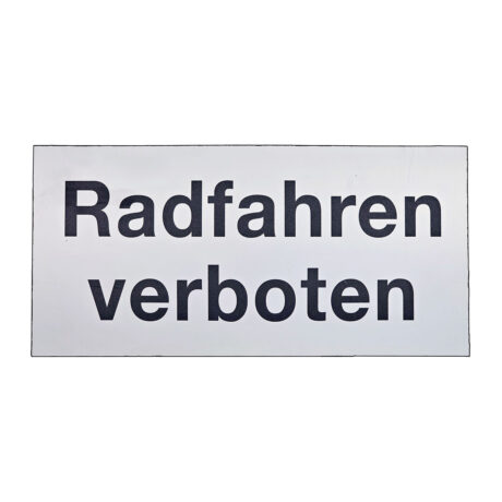 Schild „Radfahren verboten“, 310 x 150 mm, Aluverbund 3mm, 4C Direktdruck