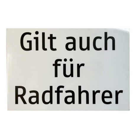 Zusatztafel „Gilt auch für Radfahrer“, 300 x 200 mm, Aluverbund 3mm, 4C Direktdruck