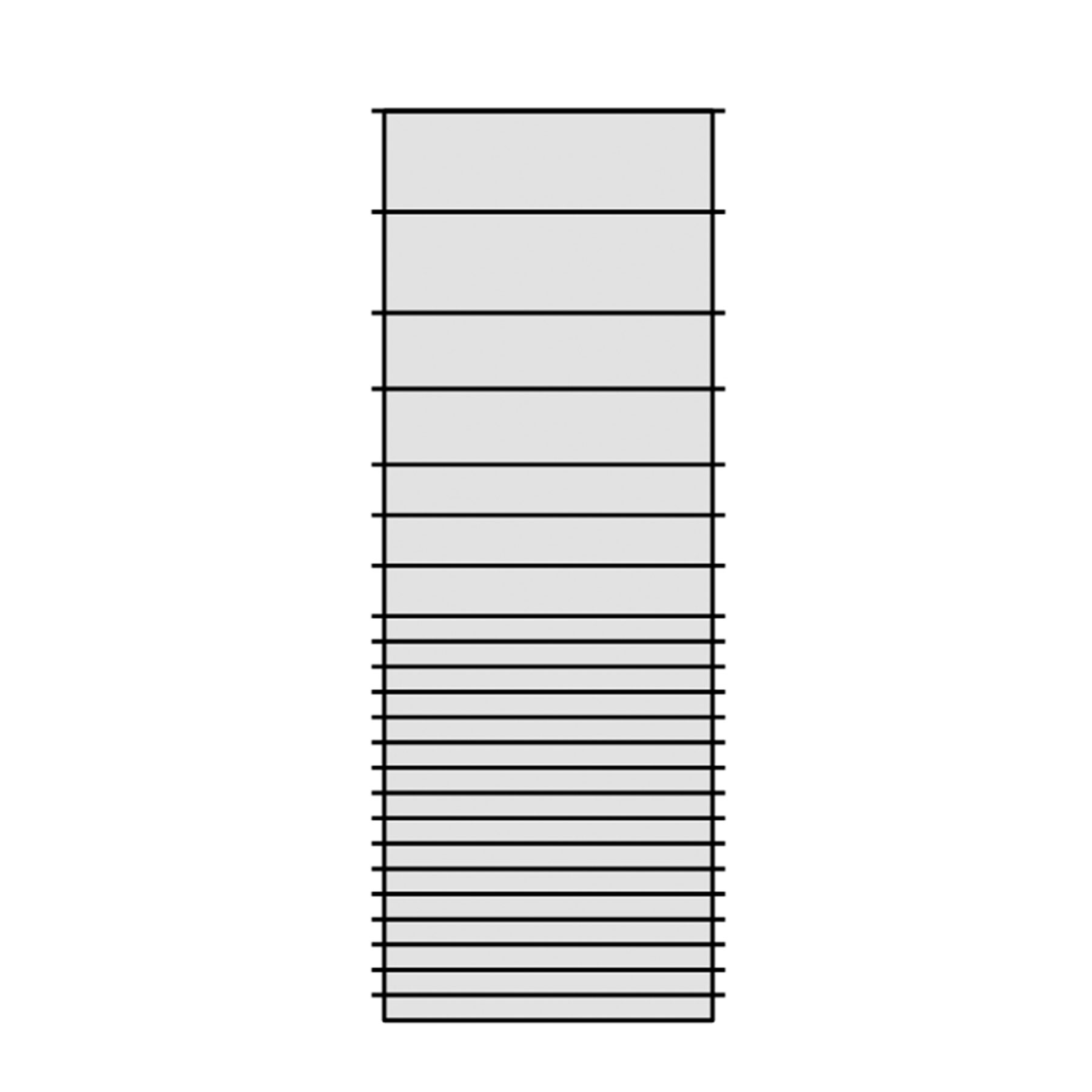 • Abstand Horizontaldröhe von unten nach oben: 3 x 20 cm / 2 x 15 cm / 3 x 10 cm / 16 x 5 cm
